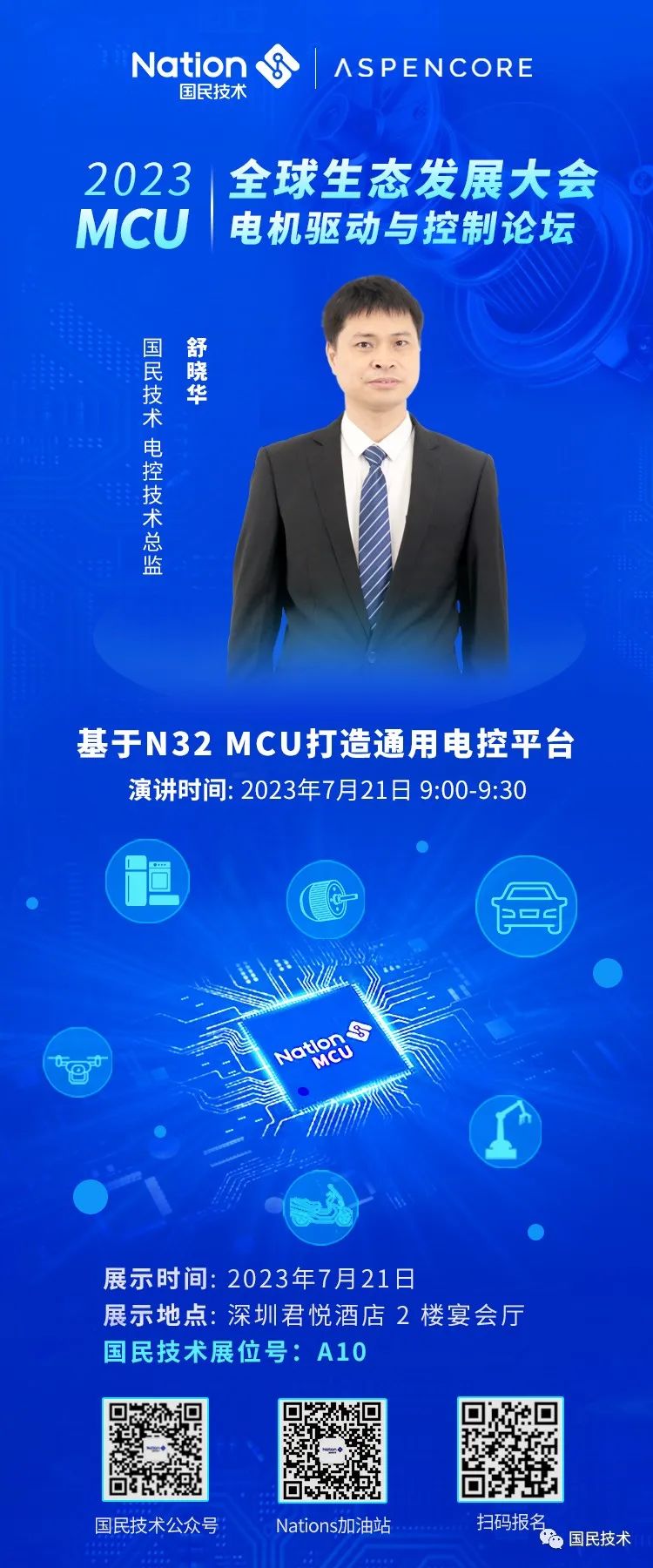由AspenCore主办的2023全球MCU生态发展大会将于7月21日在深圳罗湖君悦酒店召开。国民技术将携带高性价比MCU新品N32G451、N32G401、N32G003,高集成度电控专用MCU新品N32M41x亮相活动现场,并在电机驱动与控制论坛发表“基于N32 MCU打造通用电控平台”的主题演讲。