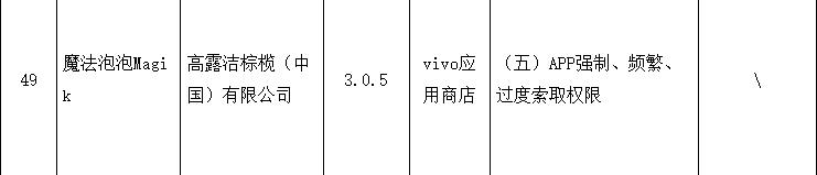 由高露洁棕榄(中国)有限公司开发的魔法泡泡Magik(版本3.0.5)存在APP强制、频繁、过度索取权限的问题,应用来源vivo应用商店。