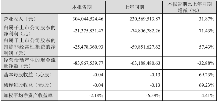 公司实现归属于上市公司股东的净利润-23,534.24万元,同比减亏58.82%,扣除非经常性损益后的归属于上市公司股东的净利润-19,584.24万元,同比减亏60.88%。