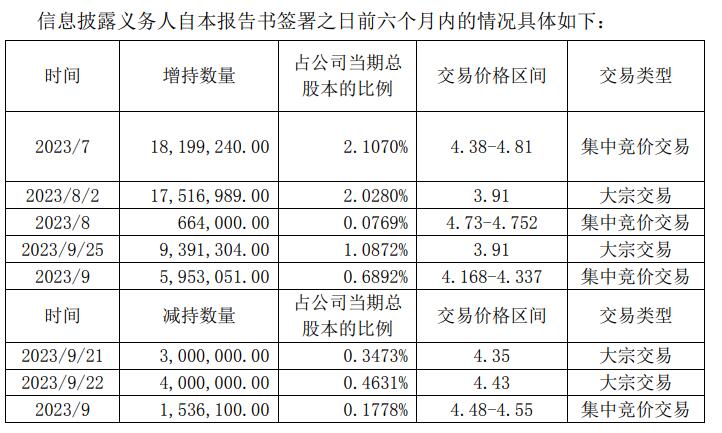 此外,思创医惠昨晚发布的简式权益变动报告书,披露了信息披露义务人自报告书签署之日前六个月内的情况。