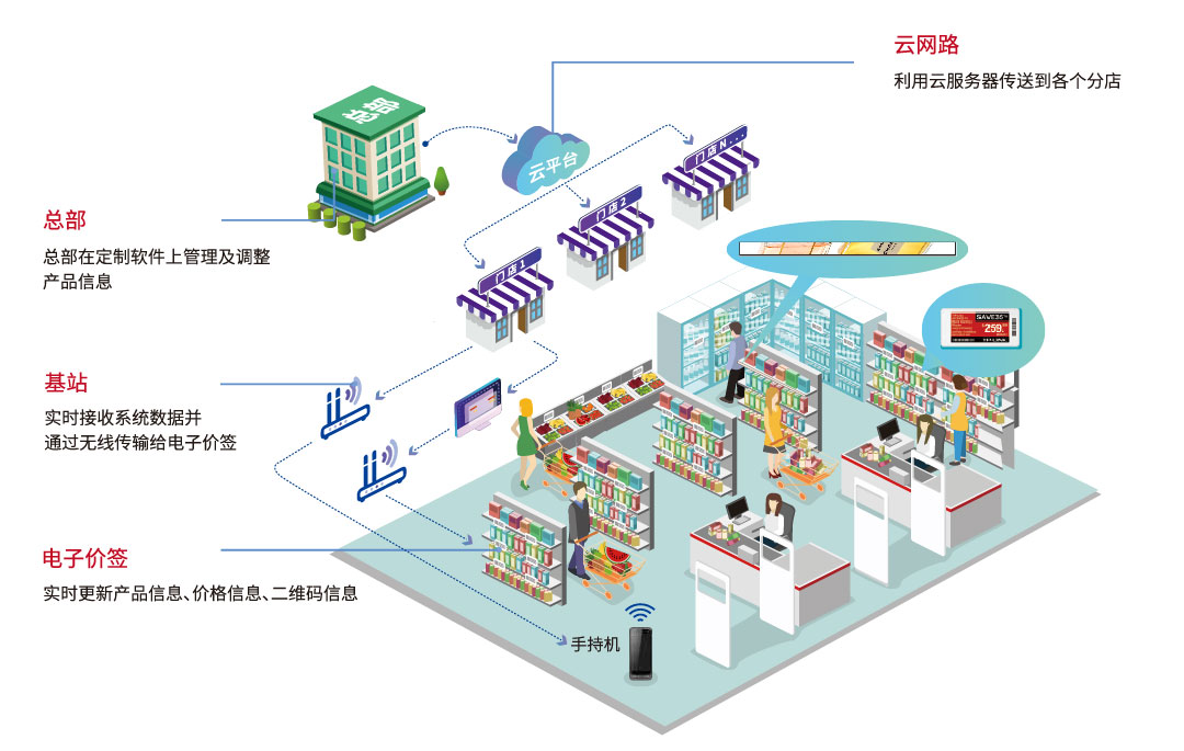 在商超卖场、生鲜菜场、连锁药店等零售行业场景中常常开展品牌系列打折、优惠等促销活动,由于商品种类众多且价格变化快,商品价签的更新频率和频次较高。传统的纸质标签更换,往往需要人工进行数据核对、打印、裁剪、安装等多个步骤,在此过程中费时费力且损耗较大,容易出现商品信息偏差等影响门店运营效率。