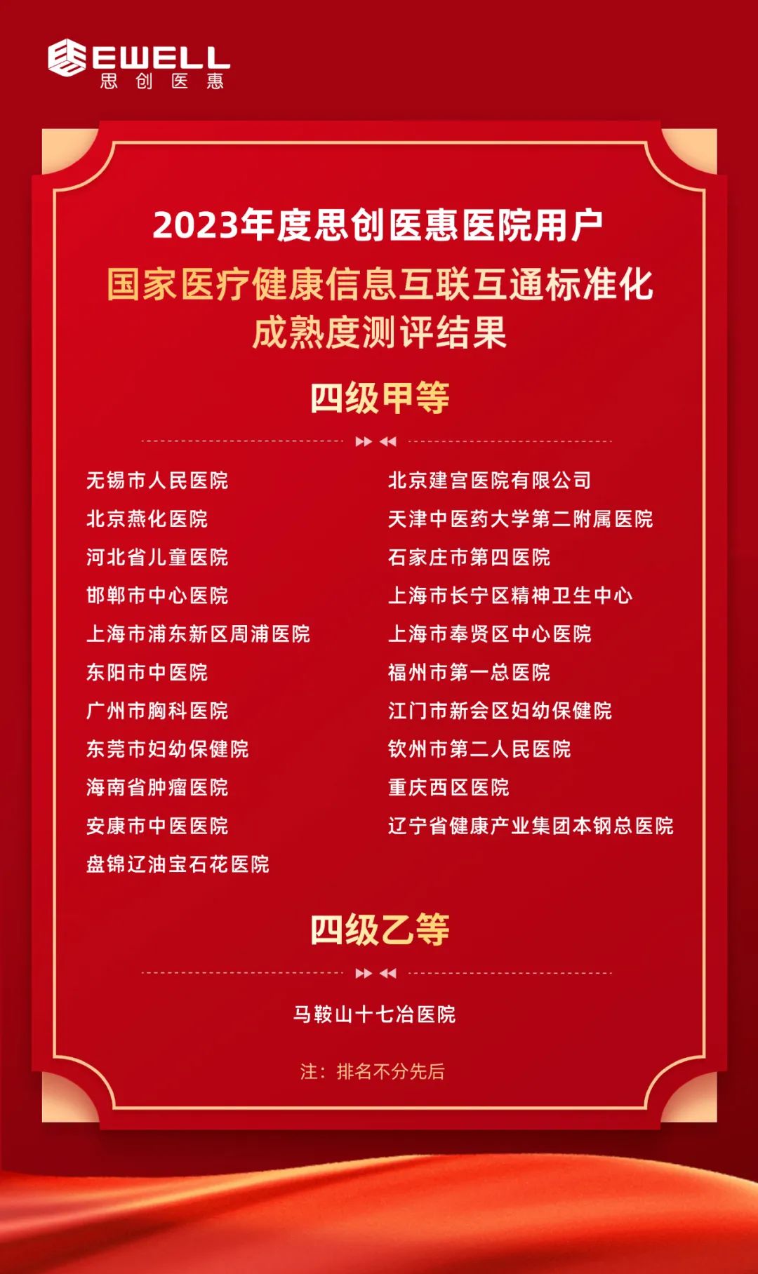 近日,国家卫生健康委统计信息中心发布《关于2023年度国家医疗健康信息互联互通标准化成熟度测评结果公示的通知》,对参加测评的16个区域和259家医院测评结果进行了公示,目前公示期已结束。思创医惠全资子公司医惠科技助力22家医院通过本次测评。