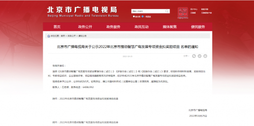 近期,北京市广播电视局按照《北京市推动智慧广电发展专项资金管理办法(试行)》《评审办法(试行)》和《奖励办法(试行)》要求,经组织申报材料审查、奖励项目比对、专家项目初评、企业答辩评审、项目现场踏勘等系列评审程序,形成2022年北京市推动智慧广电发展专项资金拟奖励项目名单。数码视讯(股票代码:300079)的“面向新视听的应急广播公共服务体系建设”榜上有名。