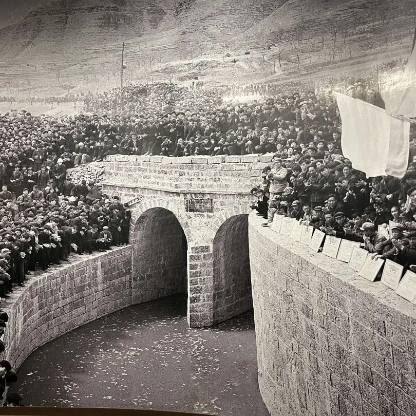 “汗水浇土风洗面,茅草刷锅泪洗碗”正是上世纪60年代林县人民饱受干旱缺水之苦的真实写照,而如今,这条耗时十年,耗费十万人力开凿出的人工天河,给这片干旱贫瘠的土地重新焕发旺盛的生命力。身处碧水蓝天,百亩良田之间,我脑海中不禁浮现出山间无数林县儿女赤膊抡锤的画面,他们用一身血肉之躯战天斗地,锤与钎的撞击叮铛作响,呐喊打气之声响彻山间,血汗与碎石相融,信念与坚持并生。