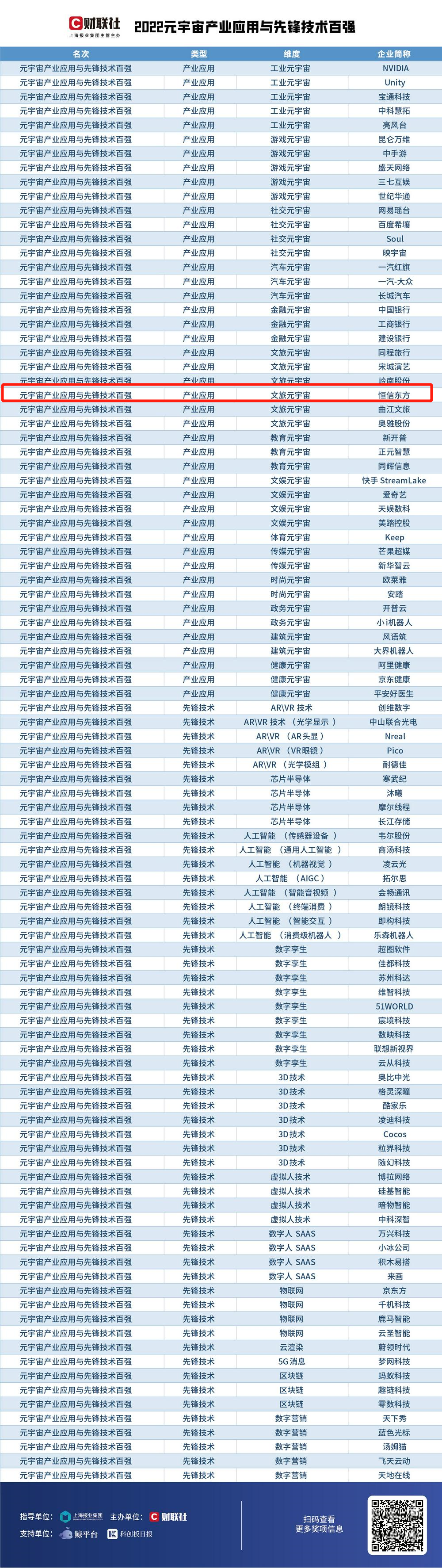 12月28日,由上海报业集团指导、财联社主办的“2022元宇宙创新评选”落下帷幕。经过层层筛选,恒信东方在众多优秀企业中脱颖而出,入选“2022元宇宙产业应用与先锋技术百强企业”名单。