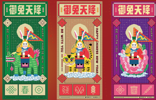 本次发行的《御兔天降》新春国潮数字盲盒共有7款,其灵感源于中华传统神话传说,意在祈福纳吉、祛灾避疫,其设计新潮的画风与极具张力的色彩,在表达传统民俗文化的同时,像素风设计更增添了数字元素,形成令人耳目一新的新春国潮数字盲盒。此外,《御兔天降》系列数字盲盒还创新融入社交互动元素,以新春祝福语的形式为用户奉上诚挚的新春祝福。