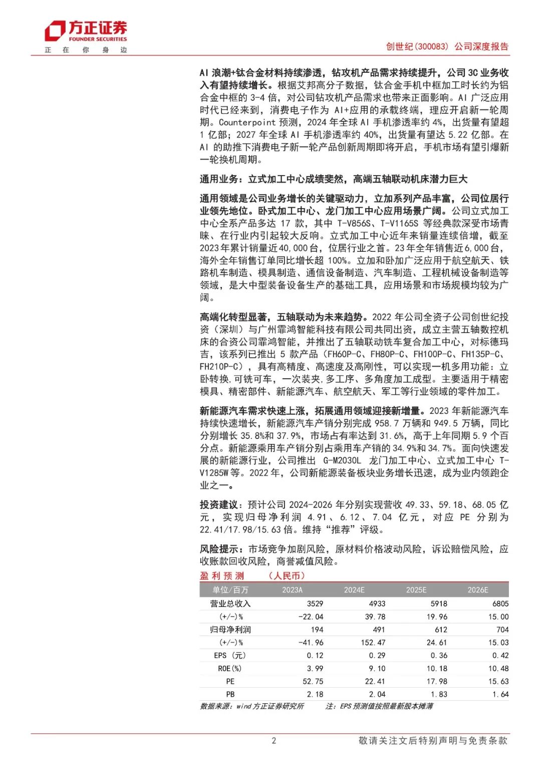 投资建议:预计公司2024-2026年分别实现营收49.33、59.18、68.05亿元,实现归母净利润4.91、6.12、7.04亿元,对应PE分别为22.41/17.98/15.63倍。维持“推荐”评级。
