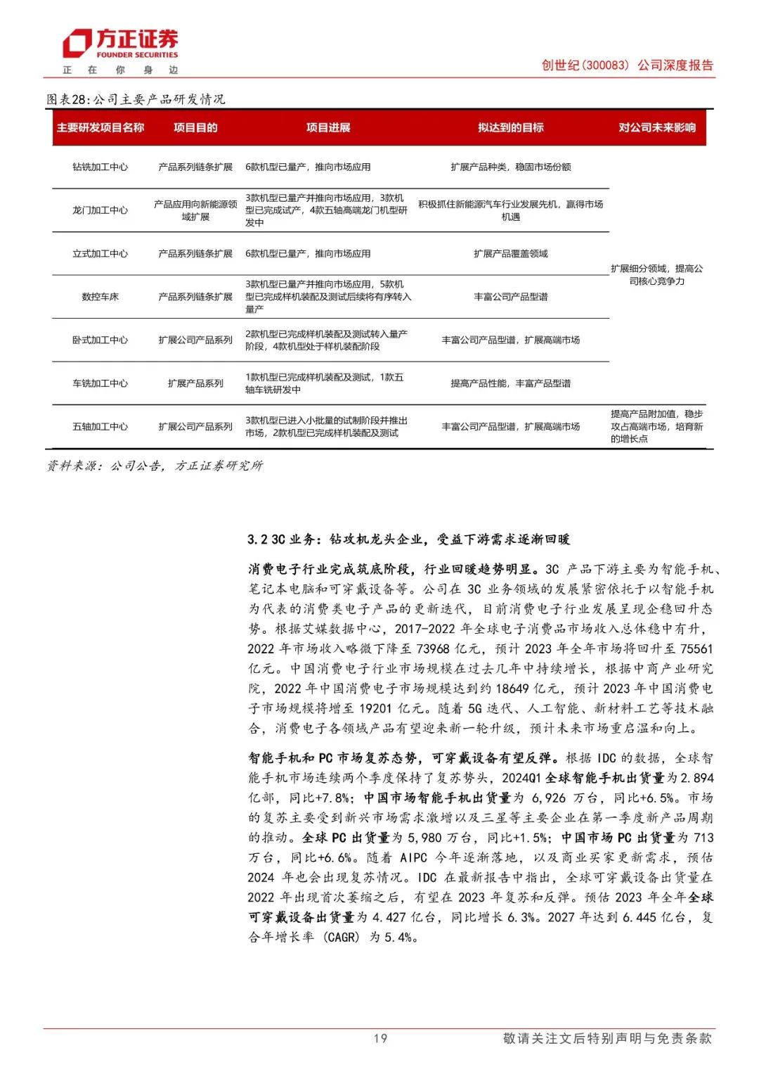 公司3C业务核心产品为高速钻铣加工中心,钻攻机参数优势显著,市场占有率领跑行业。