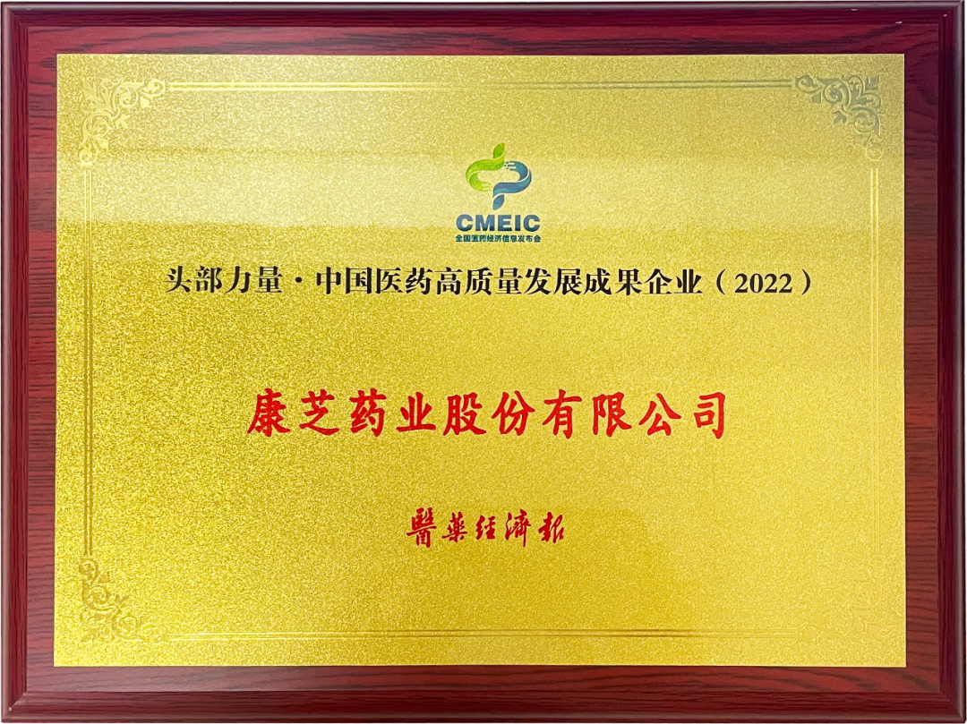 康芝药业荣获“头部力量中国医药高质量发展成果企业”奖项