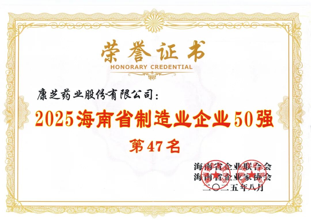 本次康芝药业荣登“2025海南制造业企业50强”榜单,不仅是社会各界对公司综合实力的认可,更是对公司未来发展的激励和鞭策。