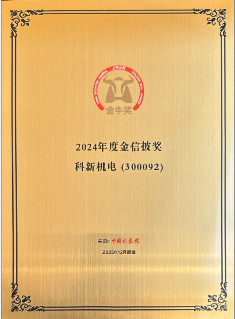近日,四川 科新机电 股份有限公司(以下简称“公司”或“ 科新机电 ”)荣获中国证券报“金信披奖”。