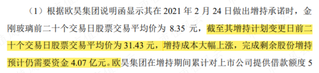 另外,最关键的原因就是金刚玻璃的股价涨啦。2021年2月,欧昊集团作出增持承诺时,金刚玻璃的股票均价为8.35元/股,然而,到了2022年1月,股价均价则上升至31.43元/股,是之前的近四倍。