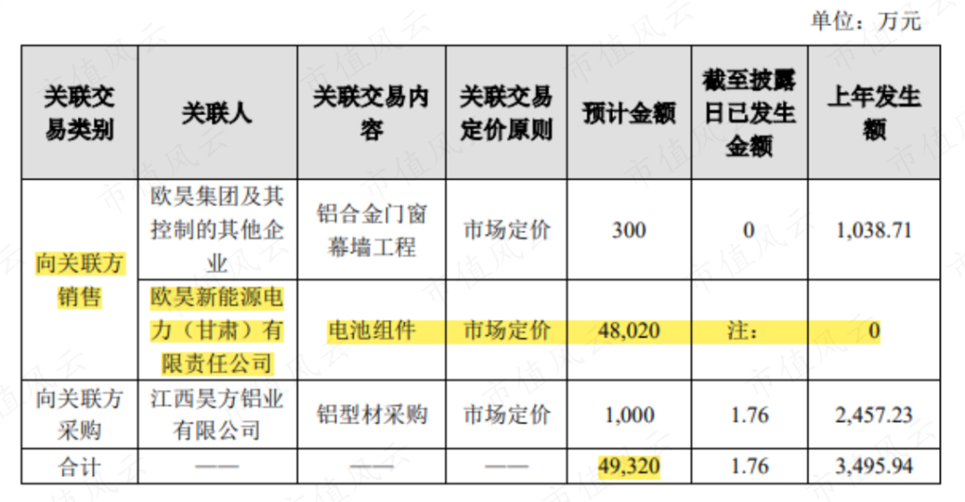 具体来看,2022年金刚玻璃关联交易激增,主要是拟向关联方销售电池组件4.8亿元带来的。