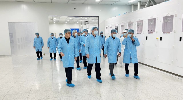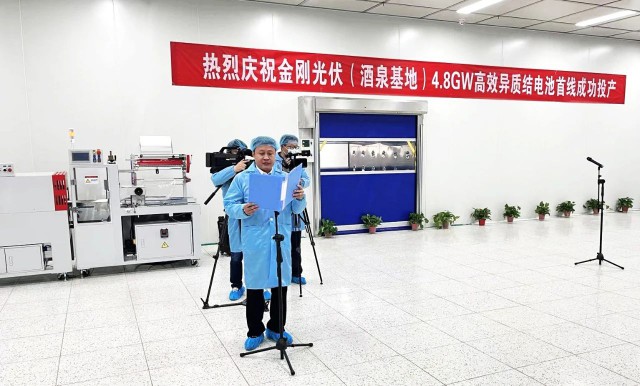 接下来,公司副总经理蒋万昌简要介绍了项目情况。伴随着热烈的掌声,在酒泉市各政府领导及合作伙伴的见证下,蒋万昌宣布“金刚光伏(酒泉基地)4.8GW高效异质结电池首线成功投产”。