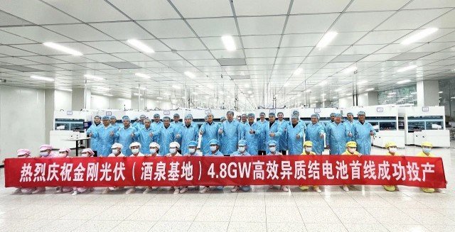 2023年4月23日,金刚光伏(酒泉基地)4.8GW高效异质结电池片及组件生产项目(以下简称“项目”)已顺利实现首线全线贯通,首批210半片双面微晶异质结电池片已于酒泉生产基地成功下线,转换效率均突破25.0%。