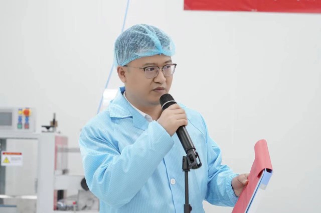 公司董事长李雪峰在仪式中发表致辞,他首先感谢酒泉市乃至甘肃省各级政府部门对项目的大力支持和政策扶持,使项目能在最短的时间内达成首线全线贯通。其次,他代表金刚光伏衷心感谢控股股东广东欧昊集团的鼎力支持,使得金刚光伏酒泉基地的生产建设取得跨越式进展。李雪峰表示,项目从签约到开工再到投产,大家克服重重困难,全力以赴推进项目建设,体现了公司的务实作风,对新能源事业发展的坚强决心。目前,该生产线210半片双面微晶异质结电池片量产转换效率可达25%,项目投产速度及首片电池片转换效率均再次刷新纪录,获得了业内及市场的广泛认可。未来,公司将用技术赋能产业发展,在不断做强做大的同时,做好甘肃光伏产业链“链主”企业的带头作用,为全省建设千亿级光伏产业集群作出应有的贡献!