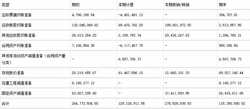 同日,公司披露《关于2022年计提资产减值准备的公告》,公司对合并报表范围内截至2022年末存在可能发生减值迹象的资产进行全面清查和减值测试后,公司2022年度增加各项资产减值准备共129126911.85元,2022年度,公司计提的应收账款坏账准备金额69470762.20元,核销199001872.92元,其他应收款坏账准备2109793.74元,核销29436267.63元,应收票据坏账准备-4401481.13元,合同资产减值准备金额-6117457.79元,其他非流动资产减值准备金额6597708.73元。
