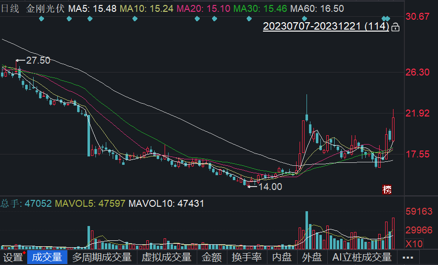资料显示,因连续3个交易日内收盘价格涨幅较基准指数偏离值累计达到30%,金刚光伏于11月15日登上龙虎榜。12月19日,上述债务豁免及重启定增公告发布次日,公司又因日收盘价格涨幅达到15%再登龙虎榜。今日下午收盘,公司股价收于21.41元/股,上涨12.57%。