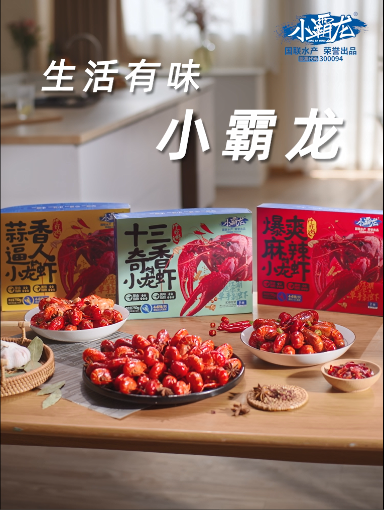 在今年3月底的良之隆中国食材电商节上,国联水产全面创新升级并推出了17款新品,其中包含了小霸龙品牌的烤鱼、小龙虾和龙霸品牌的牛蛙和蒜蓉焗汉虾,以及水晶虾饺、米香虾、田园鲜虾饼和熟虾等多元特色产品。