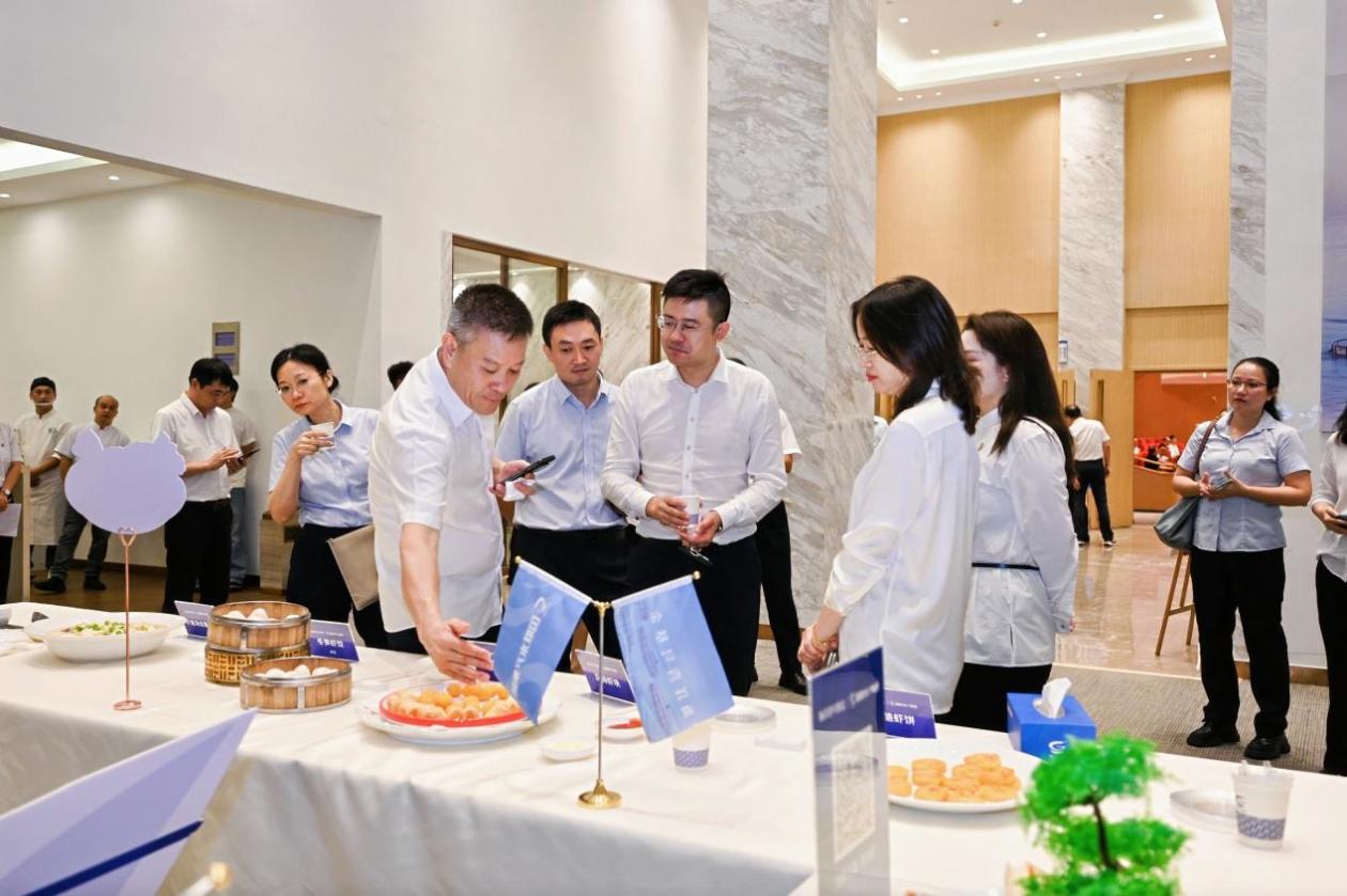 仪式启幕前,一场精心筹备的品鉴盛宴让嘉宾们领略了国联“食”力。罗非鱼汉堡层次分明,麻辣鲜香小龙虾撩拨味蕾,虾春卷金黄酥脆,水煮汉虾鲜嫩多汁......数十道佳肴以精妙摆盘与馥郁香气交织成美食画卷,点燃现场品鉴热潮,嘉宾们或细细咨询烹饪秘诀,或迫不及待尝鲜,赞誉声与欢笑声此起彼伏。