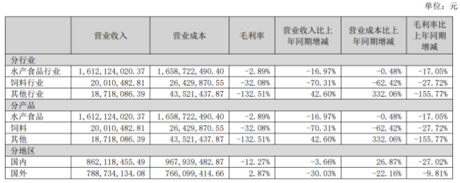 这一状况在2024年进一步恶化,亏损扩大至7.42亿元。公司在业绩说明中再次强调,在全球经济弱复苏下,水产市场持续低迷、核心产品价格低位运行、终端动销缓慢以及资产减值计提,共同导致了大幅亏损。