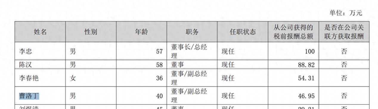 2024年,曹洛丁从公司获得的税前报酬总额为46.95万元。