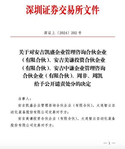 3月28日,深圳证券交易所下发关于对安吉凯盛企业管理咨询合伙企业(有限合伙)、安吉美谦投资合伙企业(有限合伙)、安吉中谦企业管理咨询合伙企业(有限合伙)、周非、周凯给予公开谴责处分的决定。