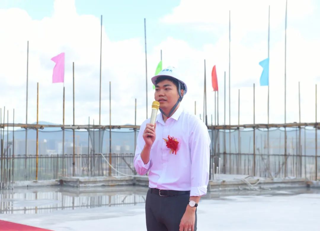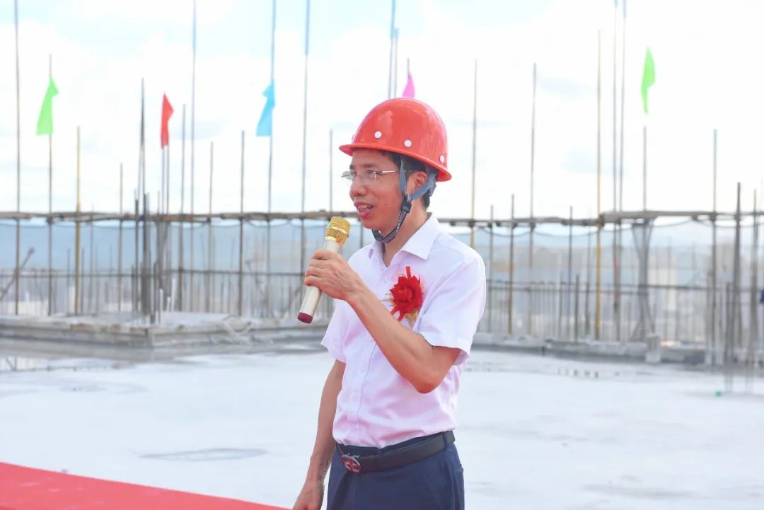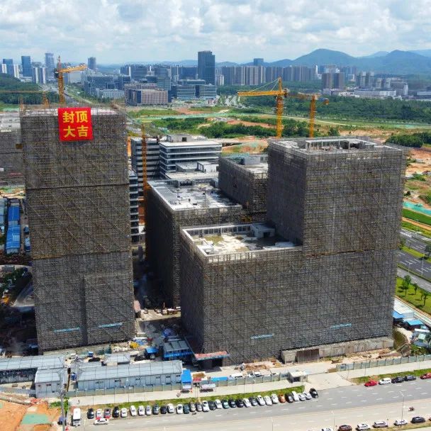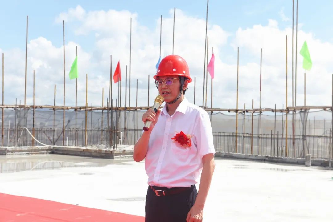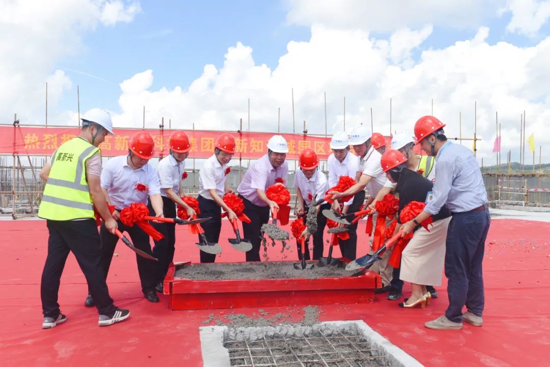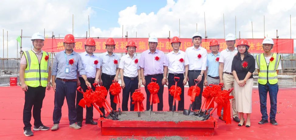 6月27日,高新兴科技集团中新知识城园区封顶仪式圆满举行。高新兴科技集团董事长刘双广,广东粤大建设集团负责人黄海州、黄梓涛,广东财贸建设工程顾问有限公司工程管理中心副总经理周海,高新兴科技集团各级领导以及施工单位、监理单位和各合作单位的相关人员出席活动,活动由高新兴科技集团党委书记、董事、知识城园区建设办负责人黄国兴主持。