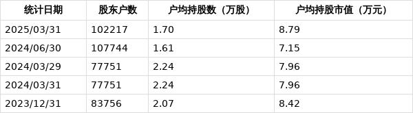 从4月19日公开信息显示,高新兴截至2025年3月31日公司股东户数为10.22万户,较上期(2024年6月30日)减少6696户,降幅为6.15%,持股趋于集中。