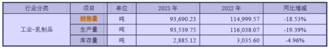 早在2023年年报中,公司便指出,为应对激烈的市场竞争,旗下乳制品生产企业持续加大产品促销力度。这一策略导致公司乳制品销售额及毛利率同比双降,其中乳制品毛利率同比下降5.2个百分点,但牺牲毛利率所换来销量并未出现预期增长,反而是大幅下降18.53%。