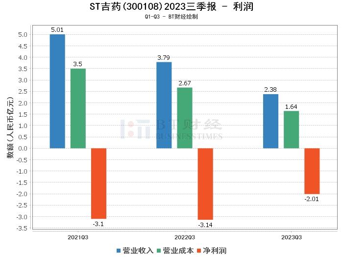 在利润方面,ST吉药的营业收入在年初至本报告期末为2.38亿元,相比上年同期的3.79亿元有所下滑。营业成本在年初至本报告期末为1.64亿元,相比上年同期的2.67亿元有所减少。这主要是由于本报告期化工行业子公司主要产品白炭黑受市场价格波动影响,营业收入、营业成本均较上年同期下降较多;孙公司辽宁美罗医药供应有限公司合作供应商的部分产品在集采中未能中标,间接导致其营业收入、营业成本较上年同期下降较多;公司管理层于 2022 年下半年陆续暂停亏损子公司经营业务,导致营业收入、营业成本较上年同期有所下降。