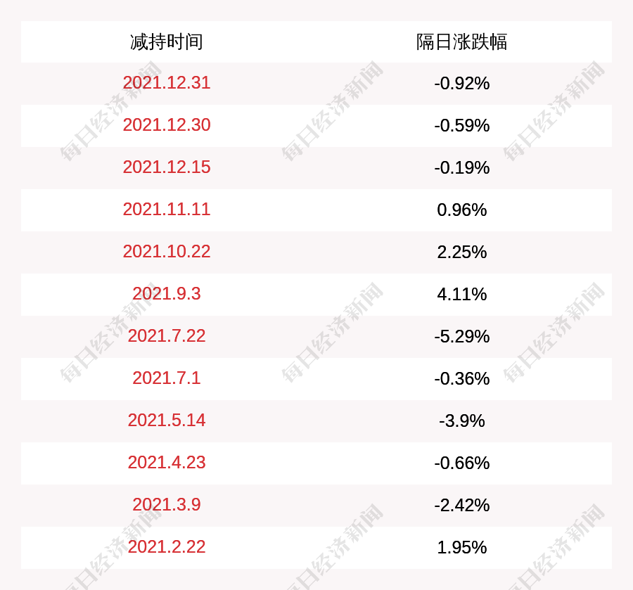 3.新开源上次发布减持公告是2021年12月31日,第二个交易日下跌0.92%,新开源近一年共发布13次减持类公告。