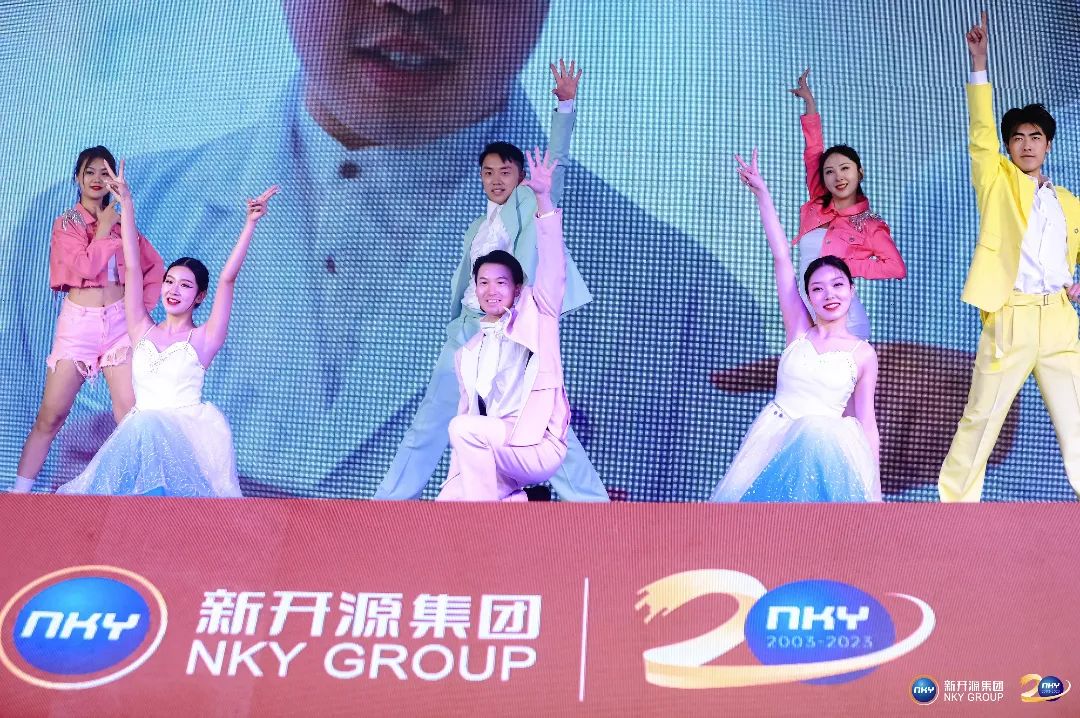 晚会上节目精彩纷呈,活力满满的舞蹈《多彩新开源》,惊险与优雅于一体的杂技表演——肩上芭蕾!蕴含新开源人拼搏精神的大合唱《新开源之歌》,传统豫剧《花木兰》,功夫舞蹈《精忠报国》和优美动人的舞蹈《盛世花开》,还有一轮又一轮的抽奖,传递着幸福与喜悦。