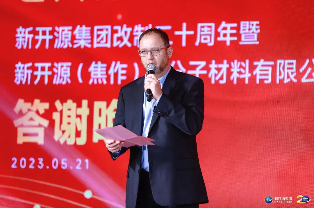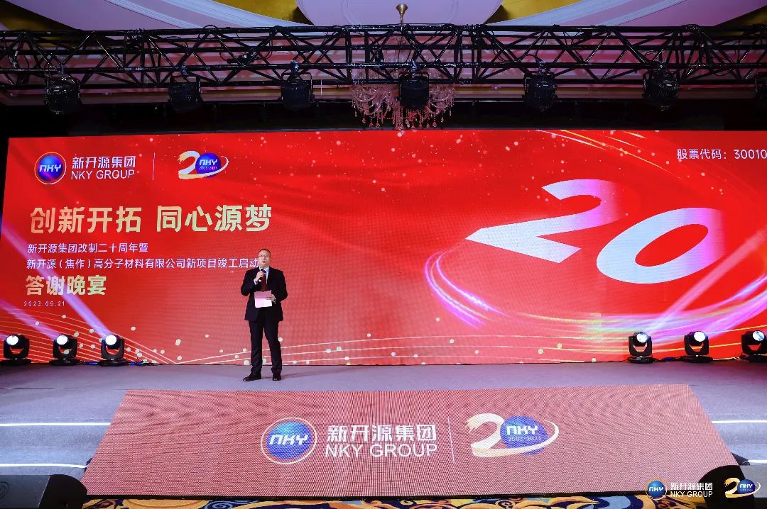 2023年5月21日,新开源迎来了集团改制二十周年和新开源高分子(焦作)材料有限公司新项目竣工启动,并于当天举办了盛况空前的庆典活动,焦作市人民政府副市长、党组成员吴军,焦作市政协副主席、中站区委书记董红倜,中站区委副书记、区长赵保霖,中站区人大常委会主任宋瑞敏,博爱县经开区管委会副主任张军,中国石化联合会副会长赵俊贵,中国企业联合会标准化工作委员会副主任、工业和信息化科技成果转化联盟专家委主任陈玉涛,博爱新开源医疗科技集团股份有限公司董事长、总经理张军政,新开源集团副董事长杨洪波,新开源集团首席科学家贺博,新开源集团创始人、控股股东王东虎,新开源集团创始人、控股股东杨海江等领导嘉宾以及来自世界各地的客户代表们出席了活动,共同庆祝新开源周年庆典和新项目竣工启动。