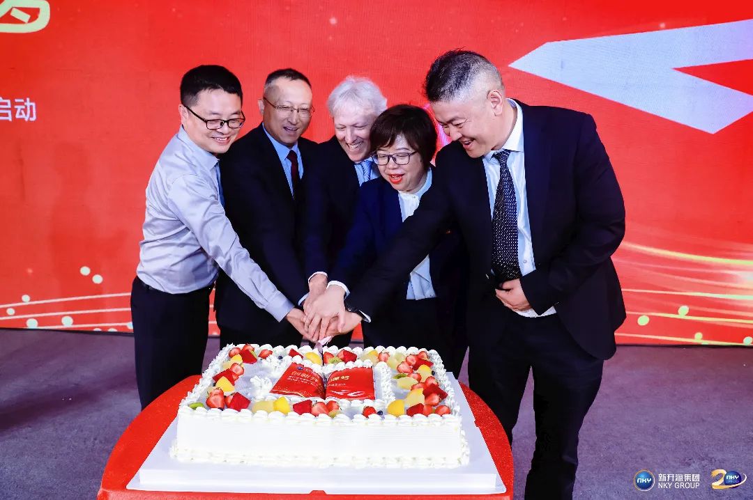 在主持人的倒数声中,张军政董事长、杨洪波副董事长、贺博博士、曲云霞董事、于江涛董事共同切开代表喜悦与祝福的20周年蛋糕,分享20周年发展成果的甘甜!祝愿新开源集团改制20周岁生日快乐!