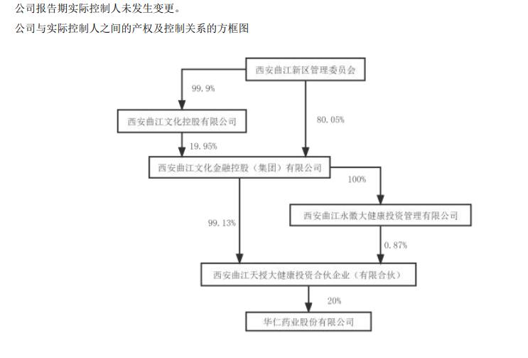 股权结构方面,2019年,原控股股东广东永裕恒丰投资有限公司及一致行动人将持有的华仁药业20%股份,以协议转让方式出售给西安曲江天授大健康投资合伙企业(有限合伙)。交易完成后,西安曲江新区管理委员会成为华仁药业新的实际控制人。