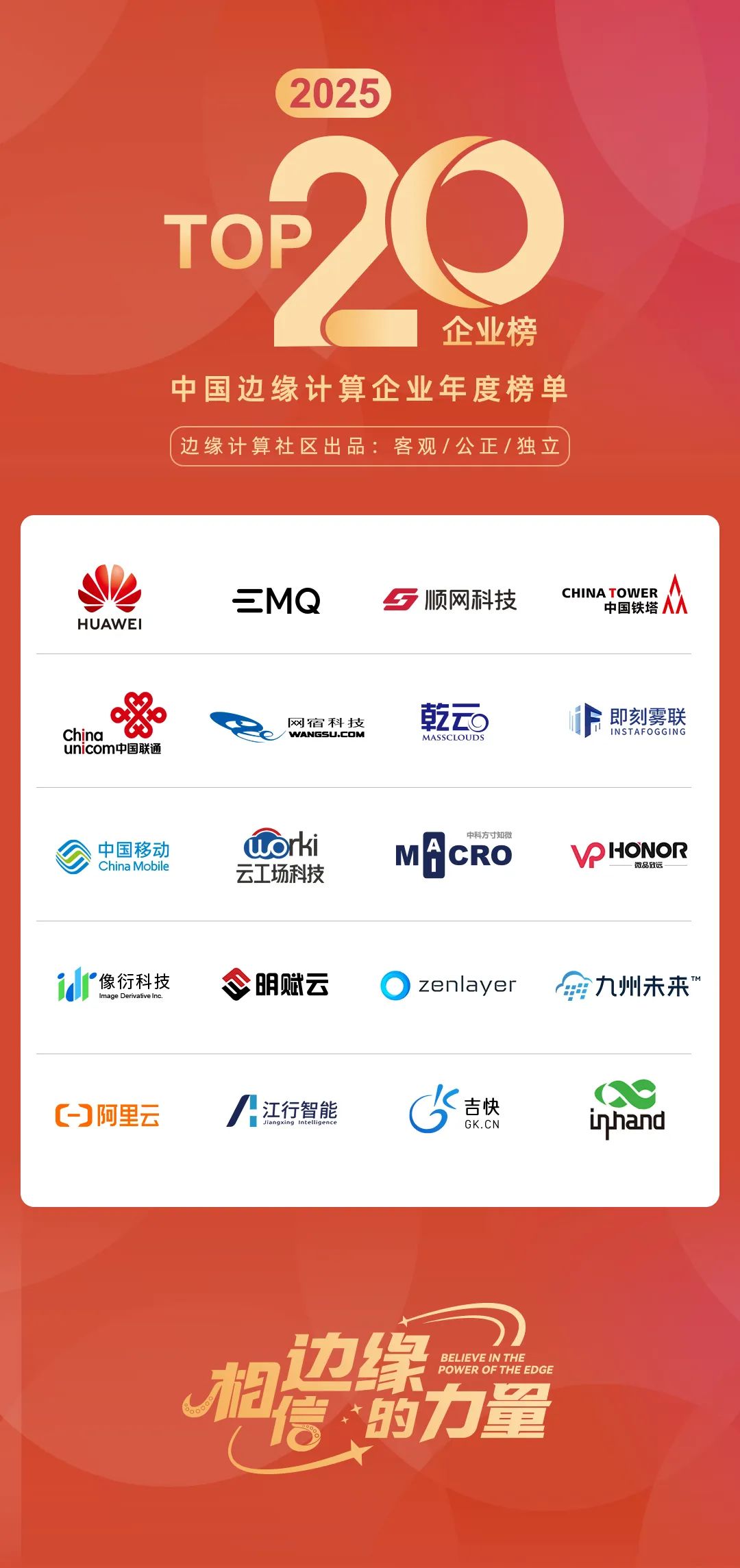 自设立以来,“中国边缘计算企业20强”榜单已累计触达超百万行业从业者,成为了衡量中国边缘计算企业竞争力的风向标。该榜单旨在推动边缘计算行业的宣传和普及,让更多人了解该领域的发展动态、优秀企业和创新产品,进一步推动行业的蓬勃发展。