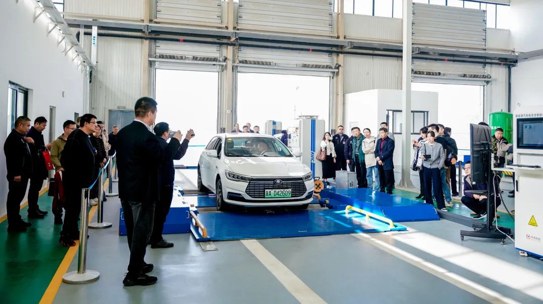 研讨会前,与会嘉宾走进中航电测华燕(石家庄)智能交通产业园,参观了产业园区,并在园区车辆测试试验中心,实地观摩了新能源汽车检测,以及检测设备计量校准的过程。