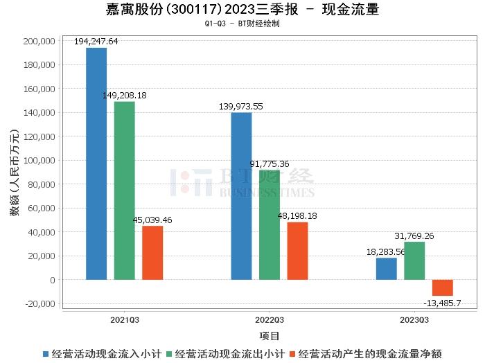 在现金流量方面,公司2023年三季度经营活动产生的现金流量净额为-1.35亿元,较上年同期的4.82亿元大幅下降。经营活动现金流入小计为1.83亿元,较上年同期的14亿元大幅下降。经营活动现金流出小计为3.18亿元,较上年同期的9.18亿元有所下降。