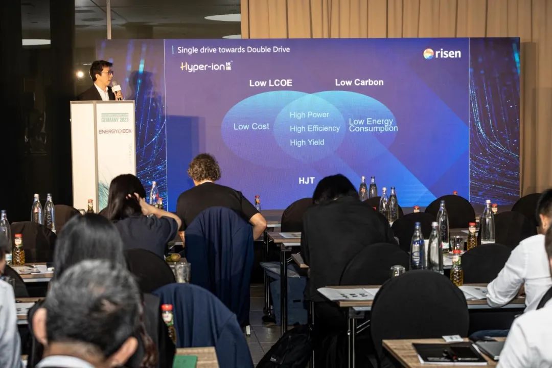 日前,由能源盒子(ENERGY BOX)主办的“2023德国国际光伏储能大会”在德国慕尼黑成功举行。全球领先的光伏智慧能源整体解决方案供应商东方日升应邀出席大会,与来自德国联邦政府、当地电力公司及本地最具开发经验资质及投资意向的龙头企业等大咖代表聚焦德国能源转型部署,共同剖析未来能源市场强劲发展势头及前沿趋势。现场,东方日升产品中心高级经理叶佳骏发表《Hyper-ion Leading HJT solar modules》主题演讲,全面分享了公司在光伏领域前沿智慧结晶对区域光伏产业高质量发展的助益性。