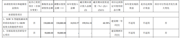 2024年8月,东方日升发布了部分定增募投项目延期的公告。公告显示,5GWN型超低碳高效异质结电池片与10GW高效太阳能组件项目(下称“项目一”)和全球高效光伏研发中心项目(下称“项目二”)达到预定可使用状态的日期分别从2024年6月、2025年6月延后至2025年3月和2025年12月,同时项目二的实施地点也发生变更。
