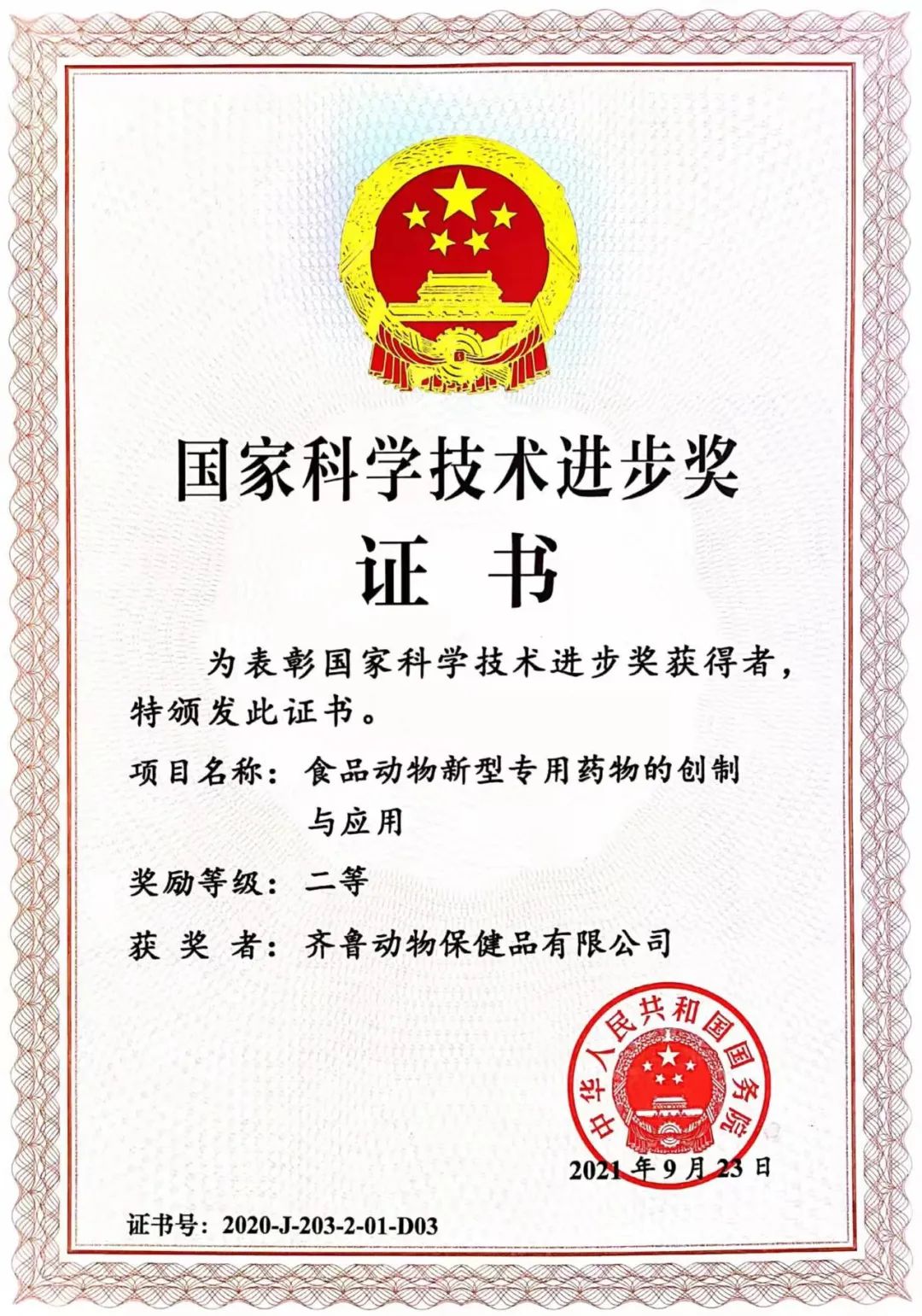 齐鲁动保累计已获得3项国家科学技术奖,获奖数量在全国兽药同行业企业中遥遥领先。两年获得三个奖项是对齐鲁动物保健品有限公司创新发展成果的最佳肯定,充分展现了其雄厚的企业实力、强大的品牌影响力和国际竞争力。