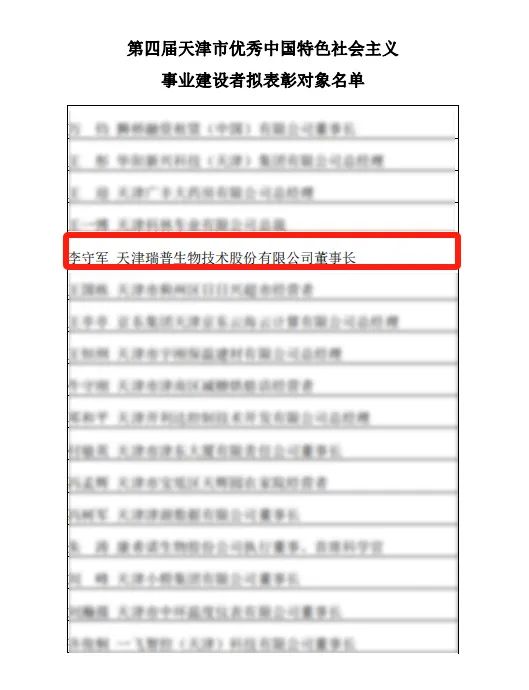 表彰会上天津瑞普生物技术股份有限公司董事长李守军还宣读了《天津民营企业助力“十项行动”倡议书》,号召全市广大民营企业牢记殷切嘱托,坚持创新引领,勇担社会责任,大力弘扬“优秀建设者”精神,为全面建设社会主义现代化国家、全面推进中华民族伟大复兴作出新的更大贡献。