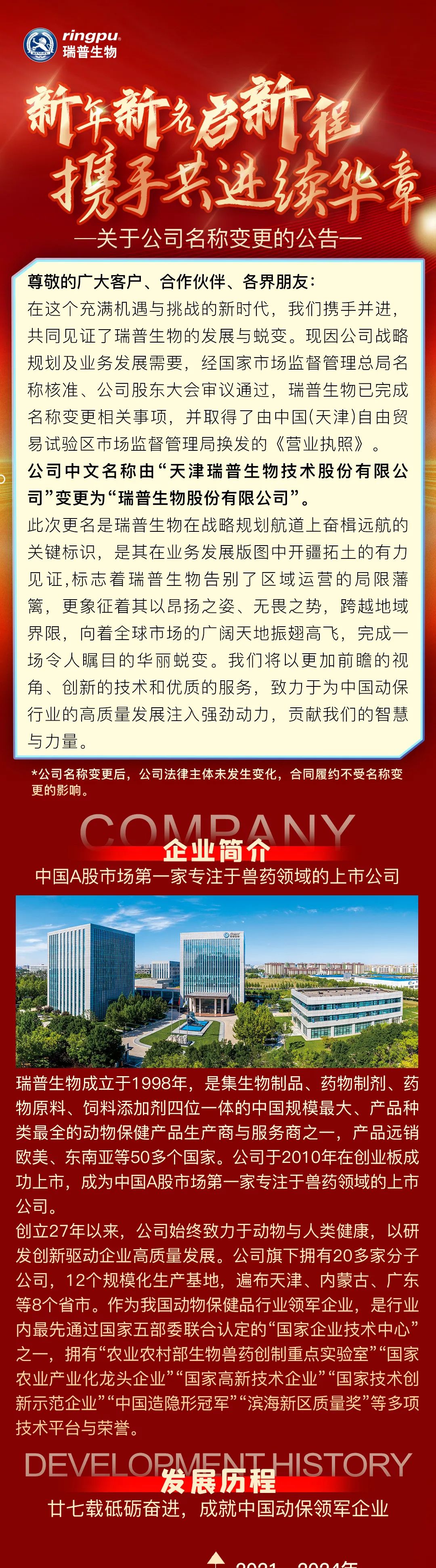 【新年新名启新程 携手共进续华章】关于瑞普生物公司名称变更的公告