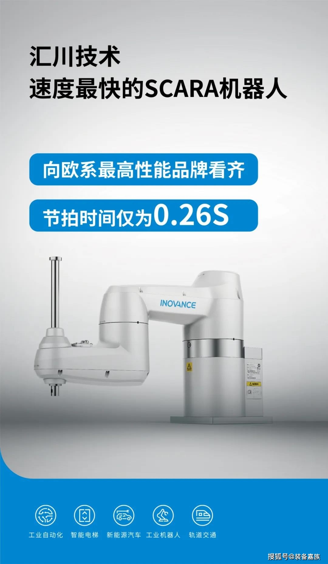 光伏电池片、锂电池、物流、食品等是当今的热门产业,在这些行业的产线上,SCARA机器人往往承担着装配、搬运、分拣、点胶、涂覆、锁附、插件、贴标等重要的工作。“热门”之下,效率、质量才是立于不败之地的根本。为了满足这些需求,汇川技术推出了新品——IR-C8高速SCARA机器人,以0.26s标准节拍成为汇川史上最快的机器人,为高精度加工带来效率飞升。