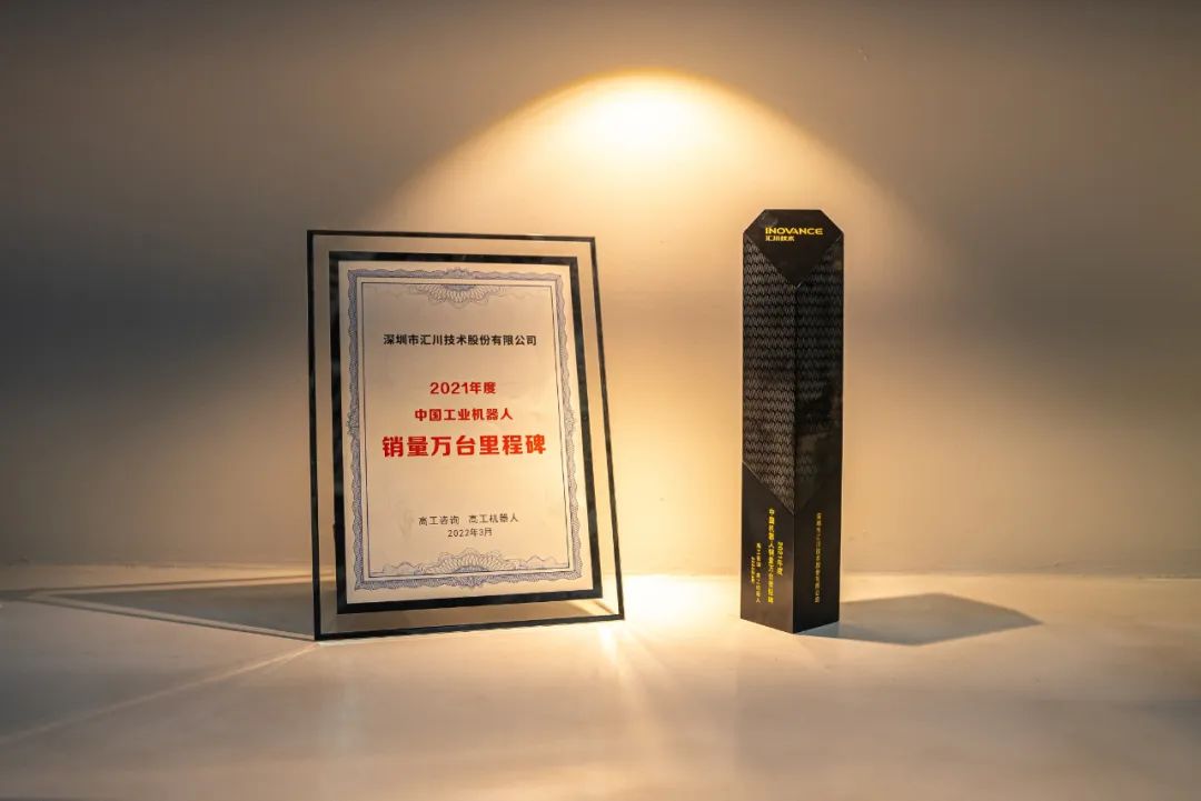 为鼓励中国机器人企业,2022年3月,高工咨询、高工机器人正式授予汇川技术“2021年度中国工业机器人销量万台里程碑”的奖杯与奖牌,并正式颁发10000元奖金。