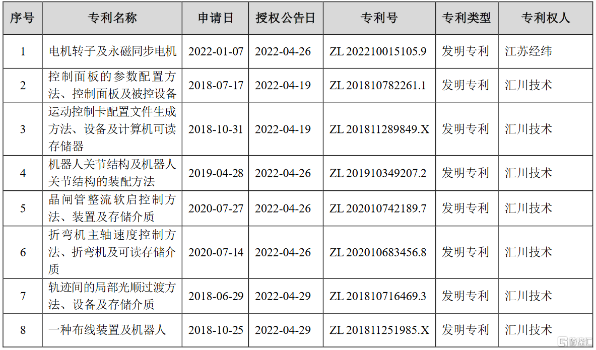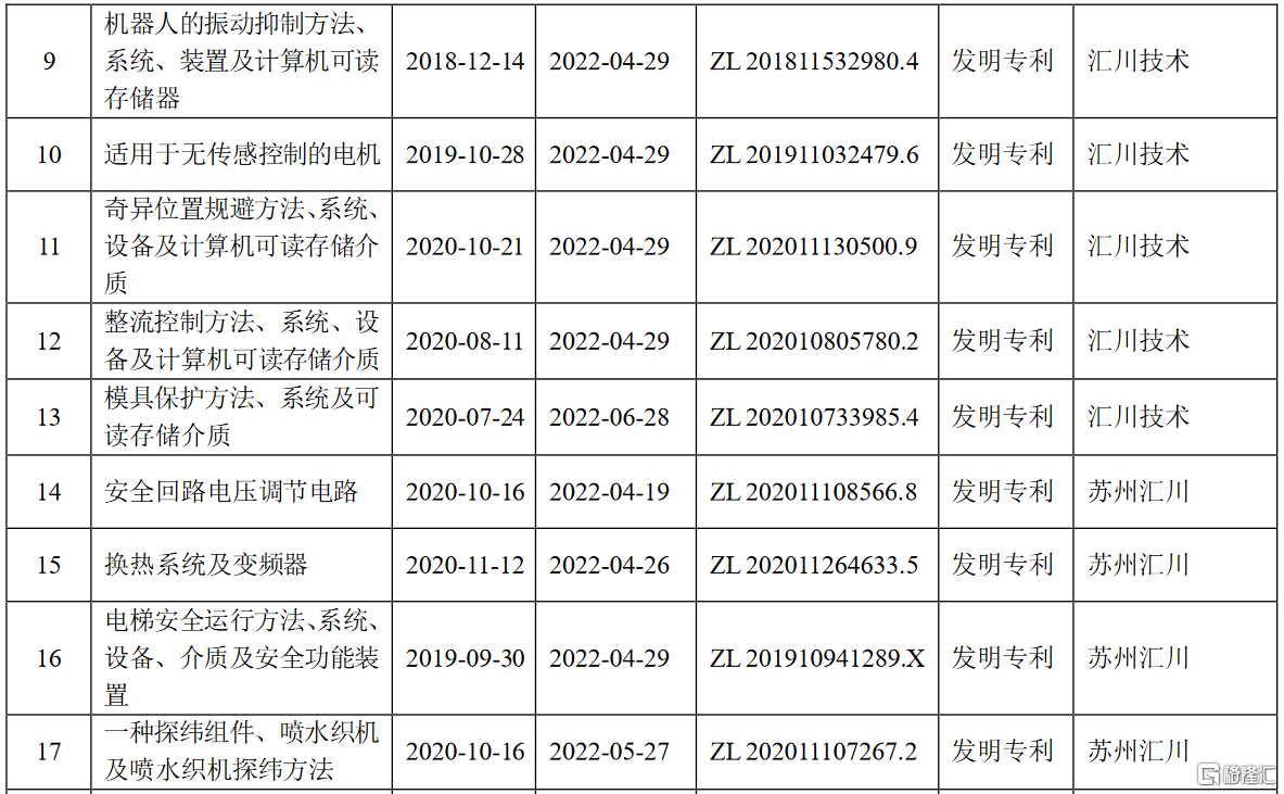 汇川技术(300124.SZ)公布,公司及子公司苏州汇川技术有限公司(“苏州汇川”)、江苏经纬轨道交通设备有限公司(“江苏经纬”)、苏州汇川控制技术有限公司(“苏州汇川控制”)、苏州汇川联合动力系统有限公司(“汇川联合动力”)陆续取得国家知识产权局颁发的发明专利证书,具体情况如下: