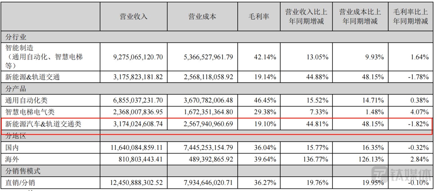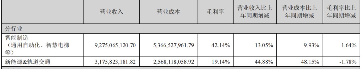 从财报来看,公司也确实有较为均衡的业务布局。2023年上半年,公司通用自动化产品的营收为68.55亿元,同比增长15.52%%;智慧电梯产品营收为23.68亿元,同比增加7.33%;新能源汽车&轨道交通类营收为31.74亿元,同比增长44.81%。