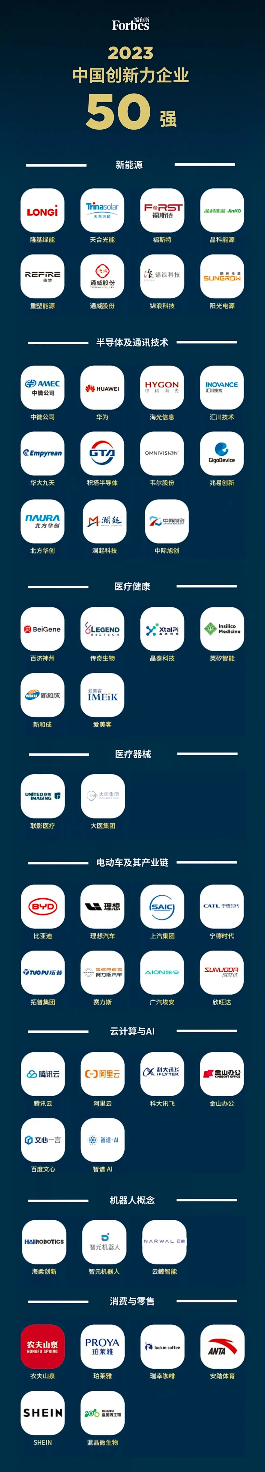 福布斯中国创新力企业50强榜单旨在呈现当前最富创新力并持续成长的中国企业。这些企业的共性,即重视创新投入、跨市场经营,并以产品为核心的组织更容易在不确定的环境与激烈的市场竞争中取得优势。