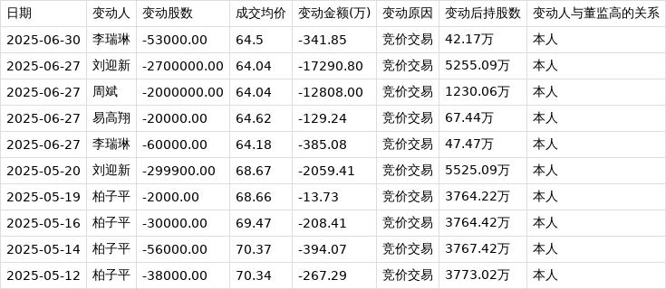 深交所公开信息显示,6月30日,汇川技术高管李瑞琳在竞价交易公司股票,减持股数5.30万股,成交均价64.50元,变动金额341.85万元,变动后持股数为42.17万股。